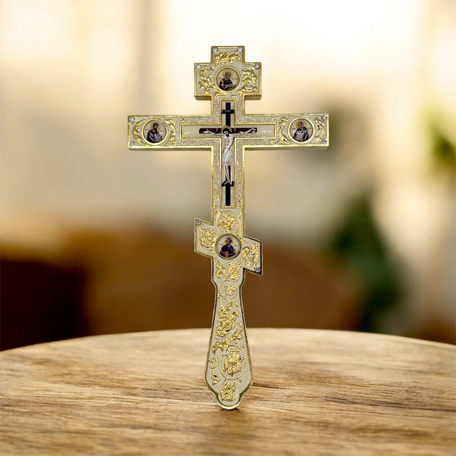 Blessing / altar cross, Gold plated with enamel.