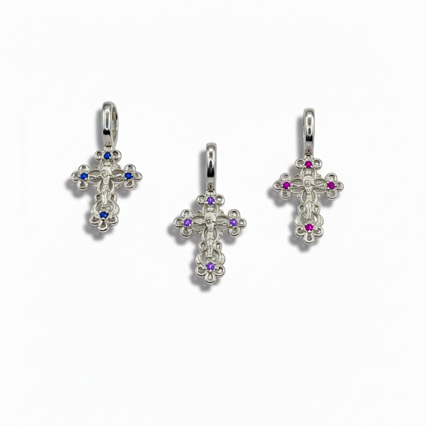 Stirling silver cross imported from Russia. Utilizing the latest hot pour technique to provide stunning clarity and detail.