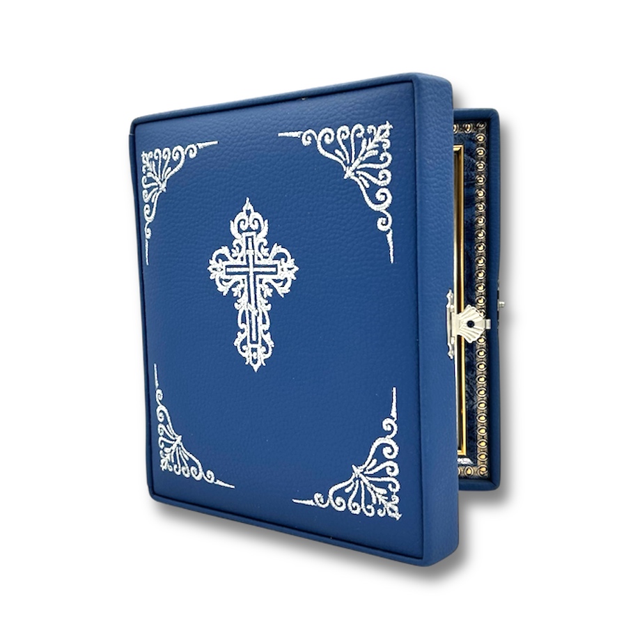 Folding Icon, with blue leather