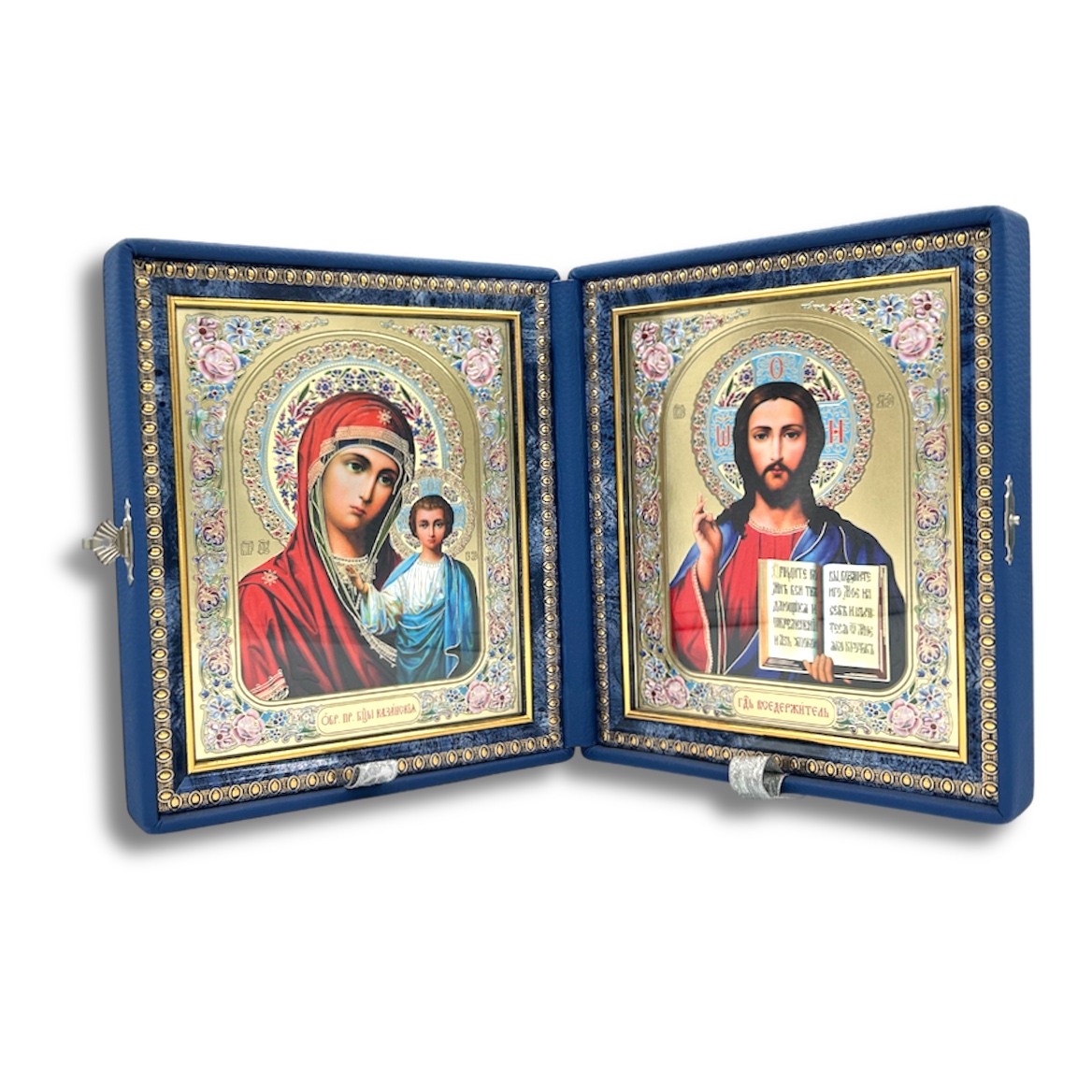 Beautiful folding icons of Christ and the Theotokos.