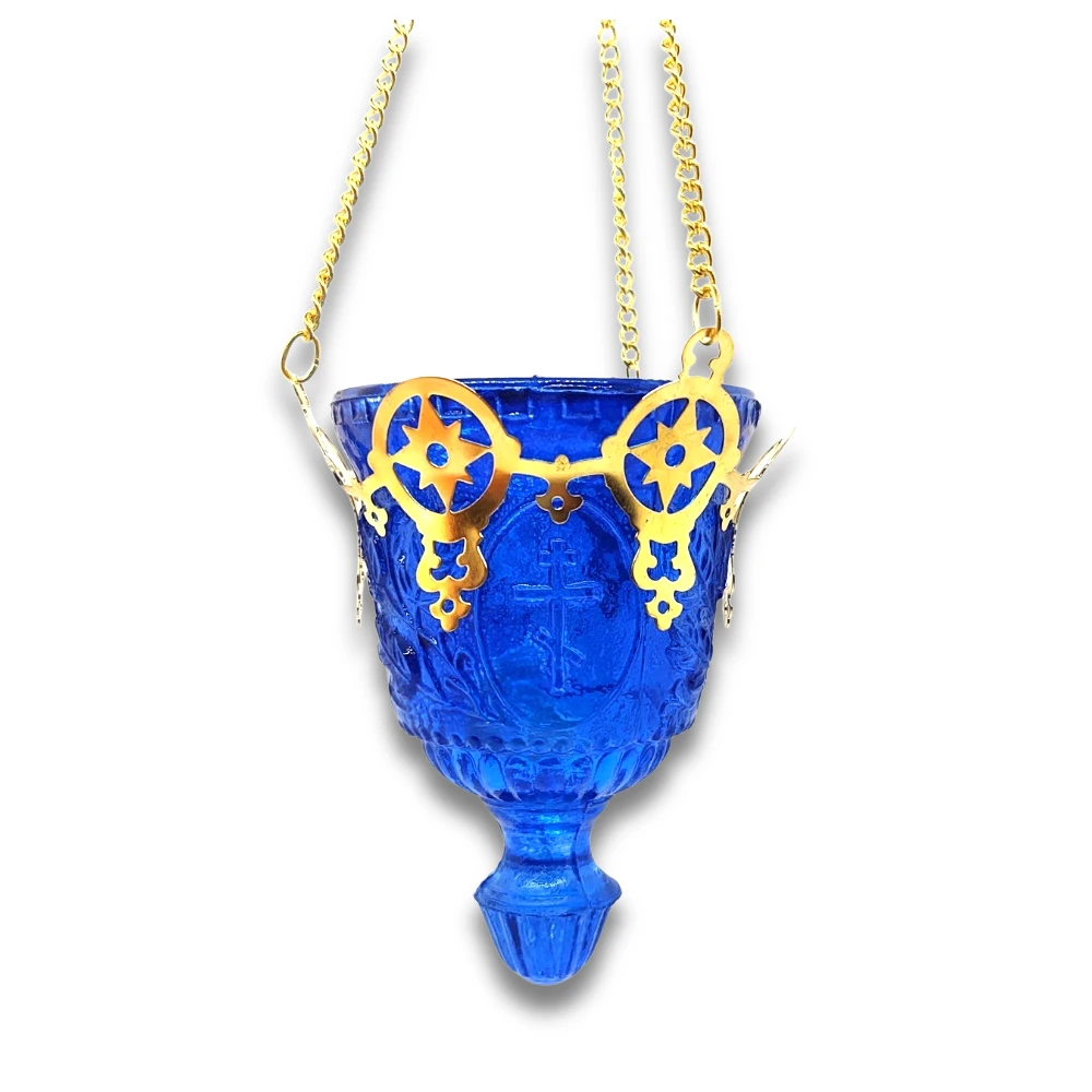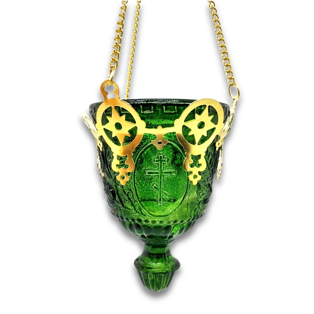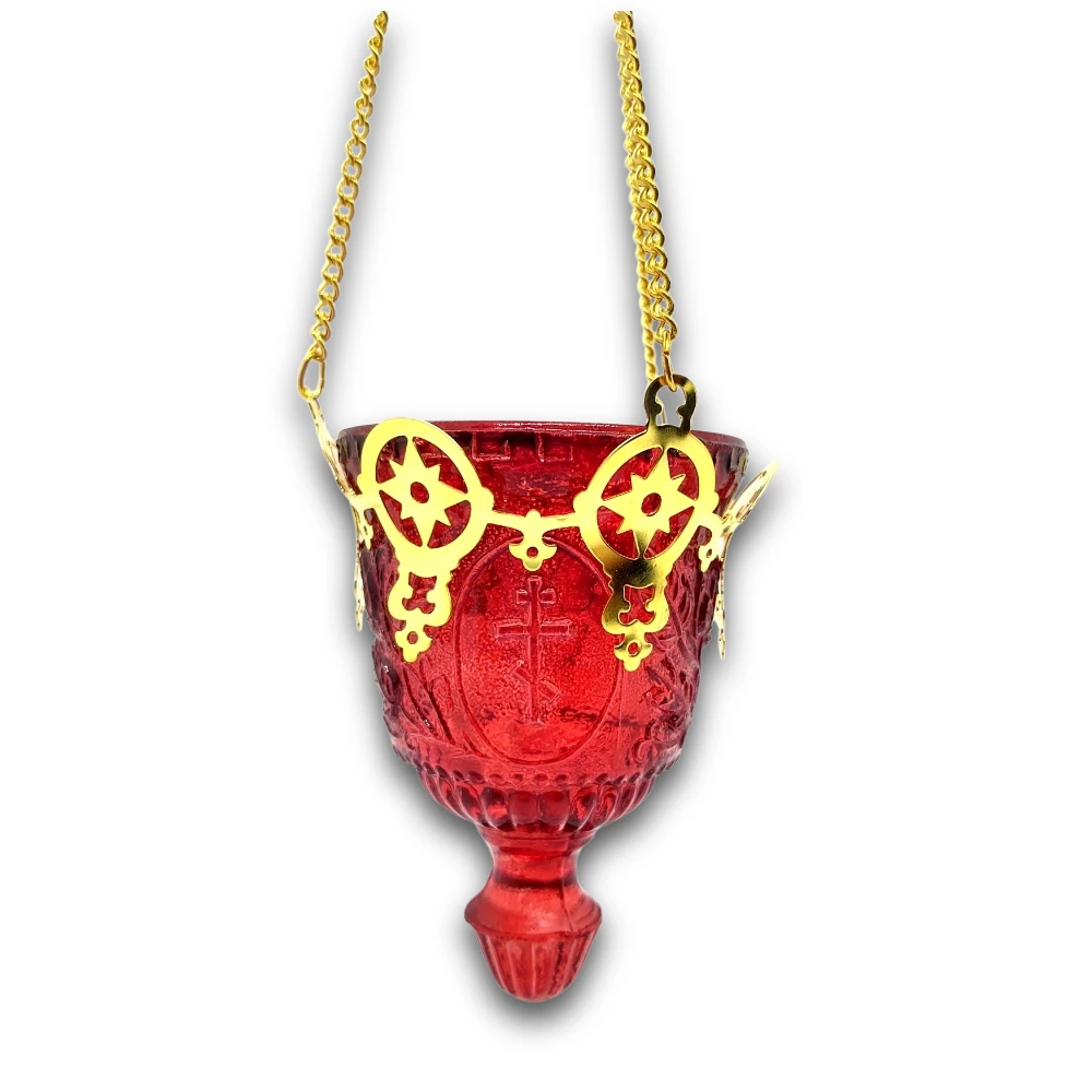 Finish: Polished brass Vigil Lamp size: 3.5in wide x 4.5in tall Total Length with chain: 28in Glass width: 3″